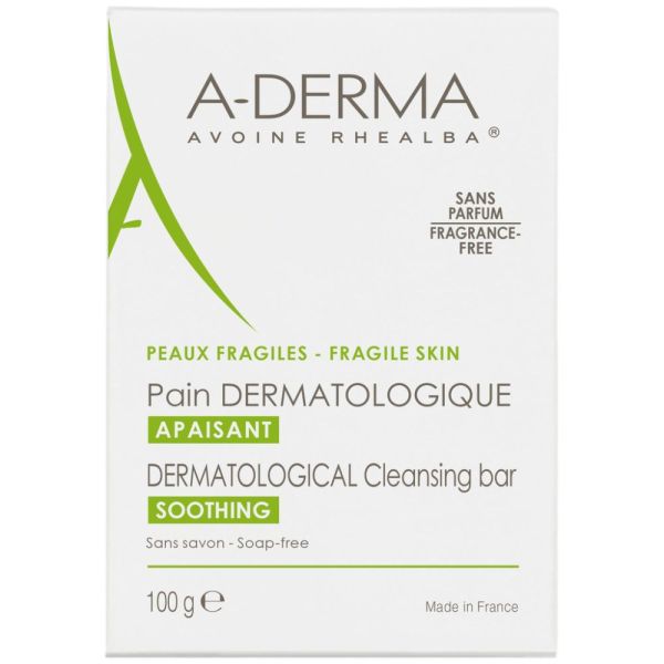 A-DERMA a formulé ce pain pour nettoyer en douceur et apaiser les peaux fragiles, sensibles ou réactives de toute la famille. La formule lavante BIODEGRADABLE* de ce pain dermatologique sans savon respecte le film hydrolipidique, le pH cutané et l’environnement. Issu de l’Agriculture Biologique, son Extrait de Plantules d’Avoine Rhealba®, cultivé localement dans le sud-ouest de la France, lui confère ses propriétés adoucissantes et apaisantes. Sécuritaire et sans parfum, le Pain dermatologique laisse la peau est propre, adoucie et confortablement apaisée. Indispensable des salles de bains, il est recommandé depuis plus de 20 ans par des dermatologues.