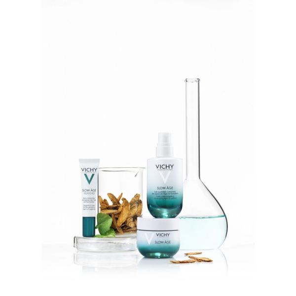 Les laboratoires Vichy ont identifié des phénomènes de vieillissement qui s'accumulent sous le coup de l'environnement (UV, pollution), des émotions (stress, fatigue) et des habitudes de vie. Grâce à cette découverte, ils ont pu développer le 1er soin de Vichy qui agit sur les signes de l'âge liés à l'ensemble de ces phénomènes, même à leur stade prélimaire : des dischromies au taches, de la perte de tonicité au manque de rebondi.